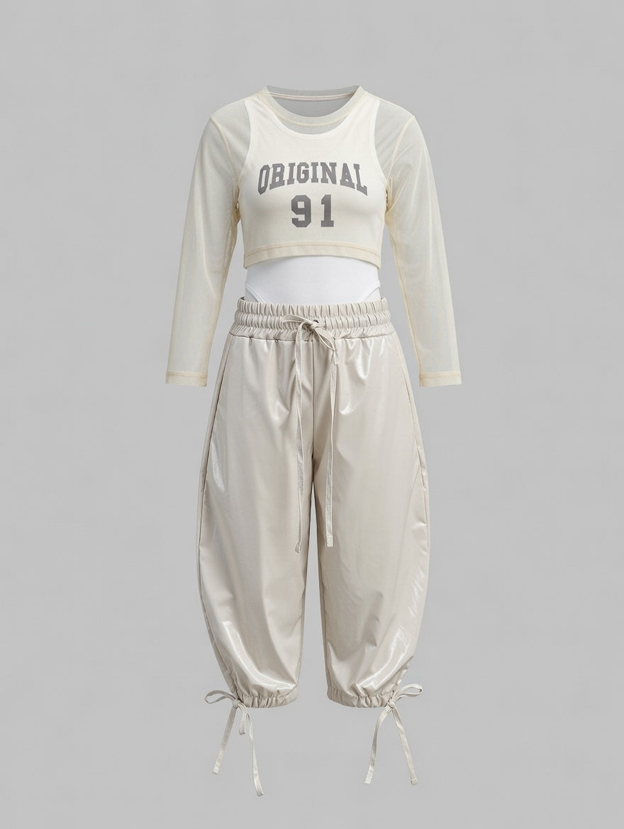 COORDSET PRIMAVERLIE PANTA BALLON CANOTTA STAMPA T-SHIRT VELATA SIZE 4/14 ANNI