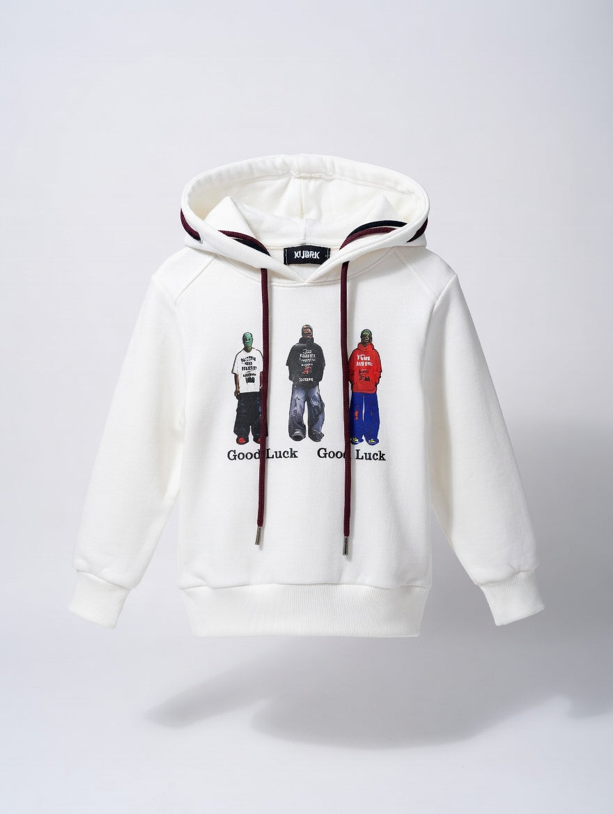 FELPA IN COTONE LEGGERO PRIMAVERILE KUBYK STAMPA RIALZO AVANTI LACCIO DOPPIO CAPPUCCIO SIZE 2/16 ANNI