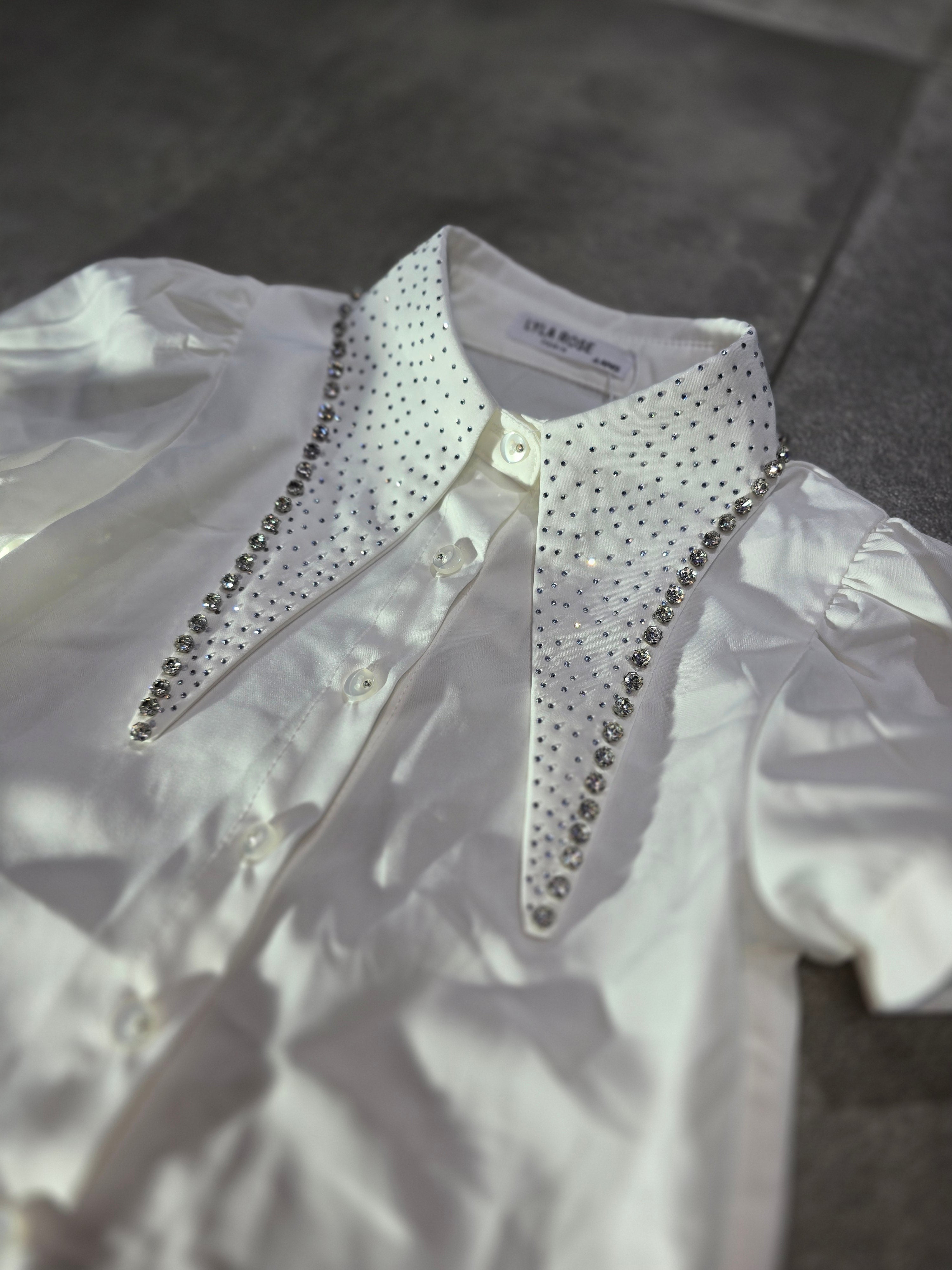 CAMICIA MANICA SBUFFO COLLO LUNGO SWAROVSKI SIZE 4/14 ANNI