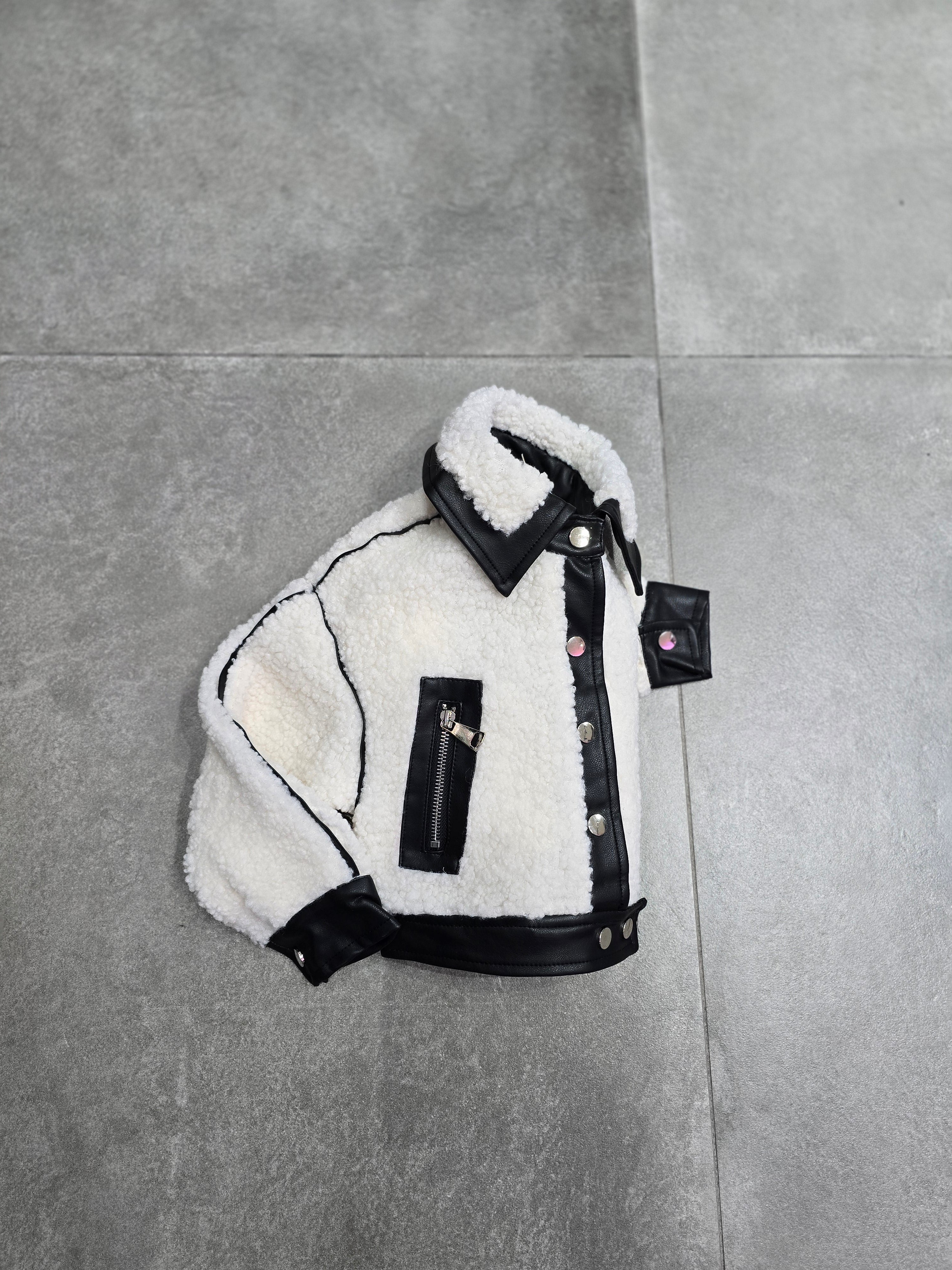 JACKET TEDDY DOPPIO TESSUTO INSERTO IN E.PELLE SIZE 4/14 ANNI