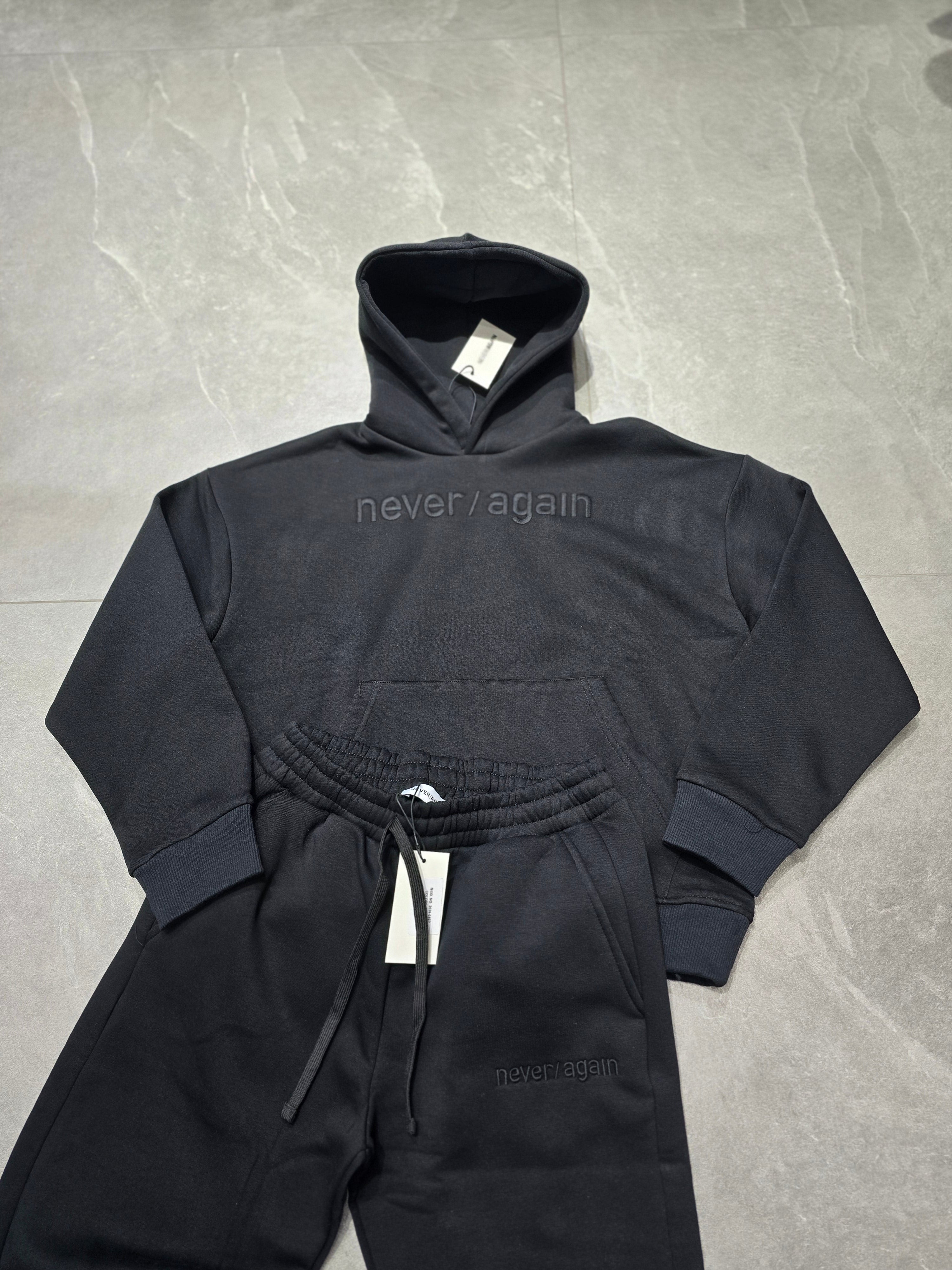 TUTA NEVER AGAIN LOGO RICAMO AVANTI E SUL PANTA...PANTA VESTIBILITÀ BAGGY CON LACCIO PER STRINGERE ALLA CAVIGLIA SIZE S/XXL